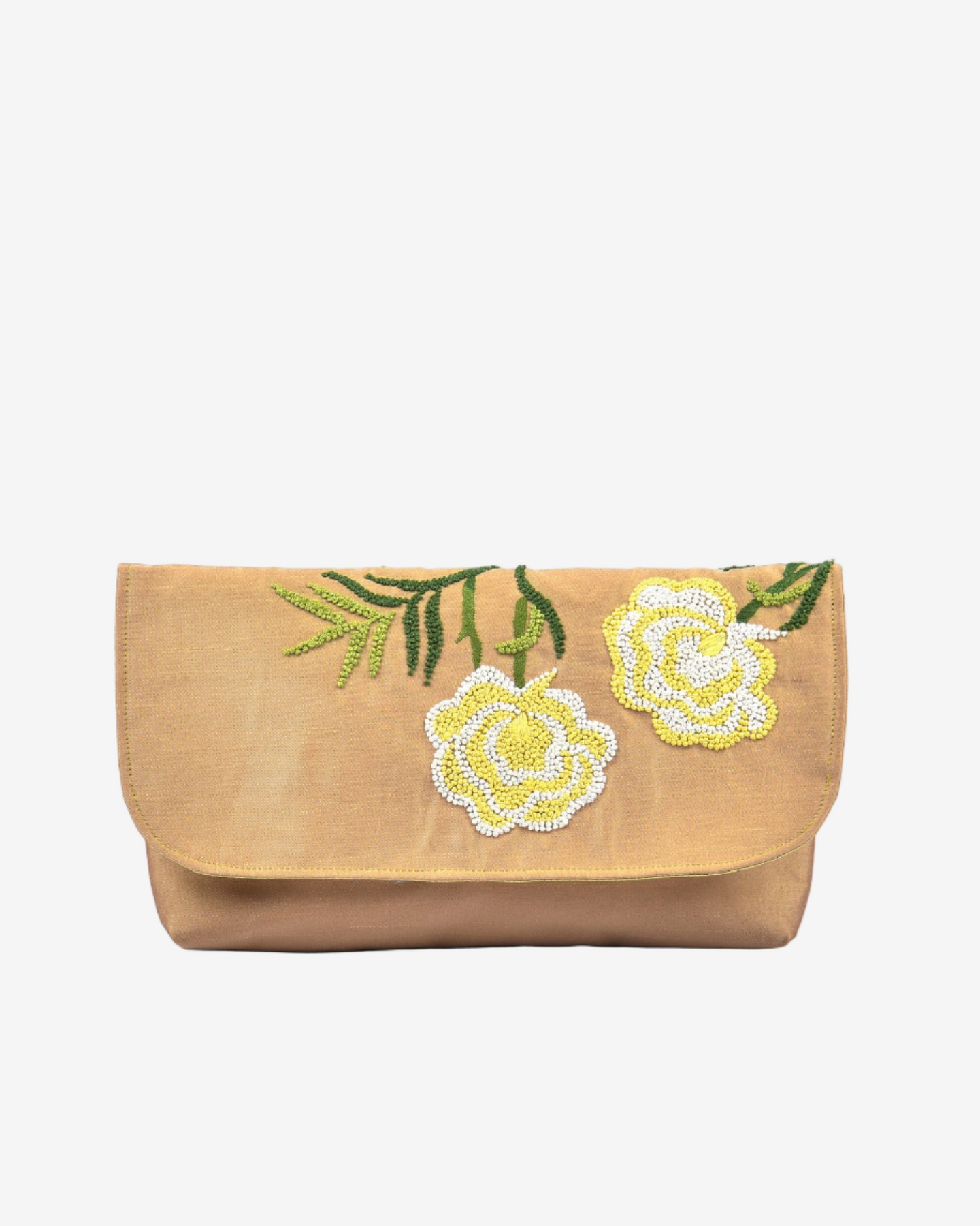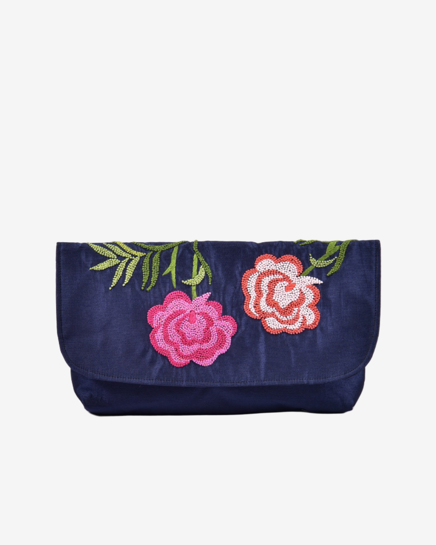 Rectangular Taffeta Purse with Hand-sewn Glass Bead Rose Patterns on Lid